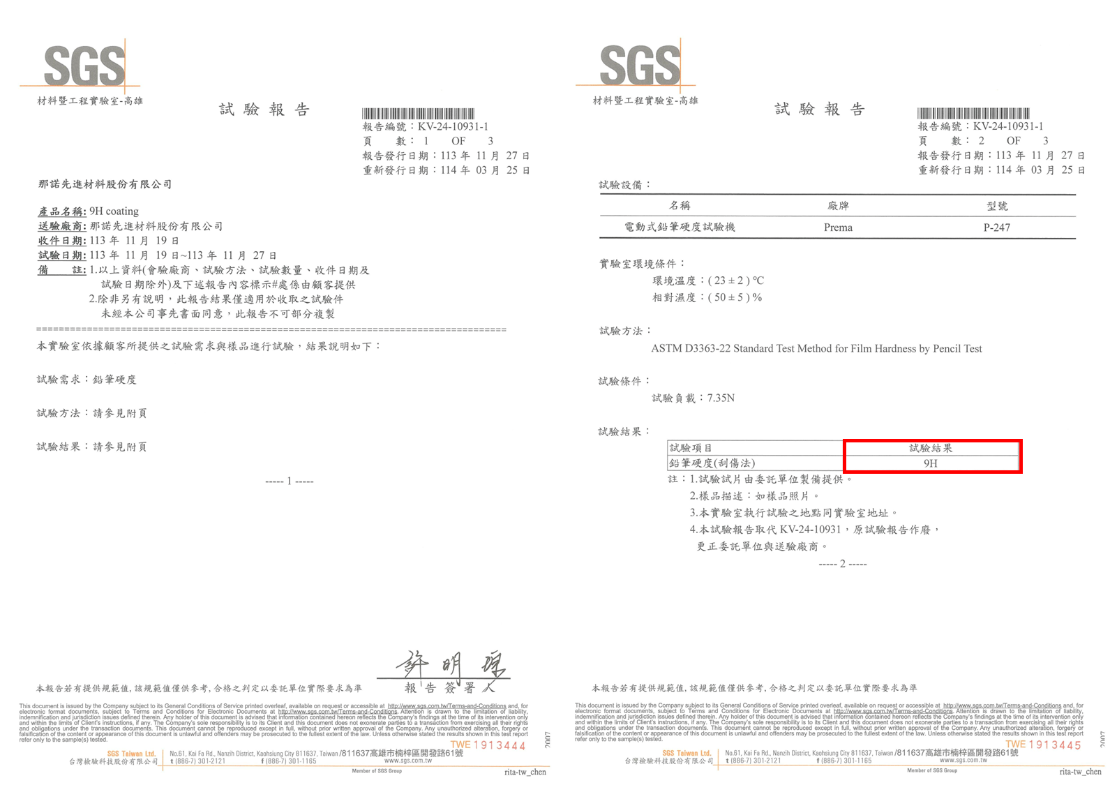 NANOKEEPER專業鍍膜液,通過SGS檢驗-硬度測試報告